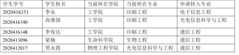 教务系统中提交转专业申请且通过初审,光电信息科学与工程、电子信息工程、通信工程专业的学生。