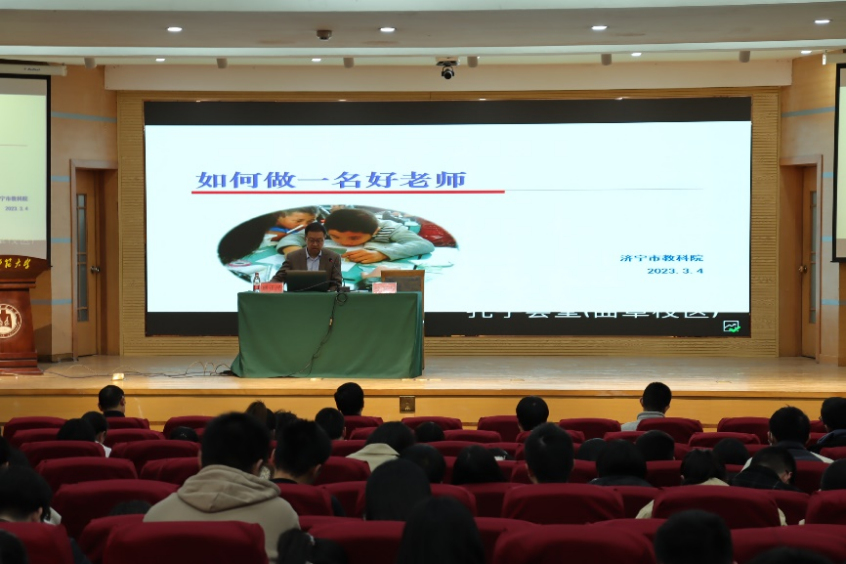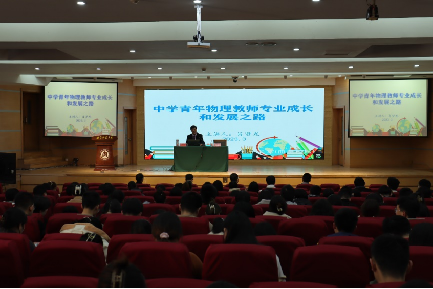 报告会邀请齐鲁名校长济宁市育才中学副校长肖贤龙正高级教师和济宁市教科院初中物理教研员盛正民高级教师做学术报告,为同学们接下来的教育实习提供专业的指导。