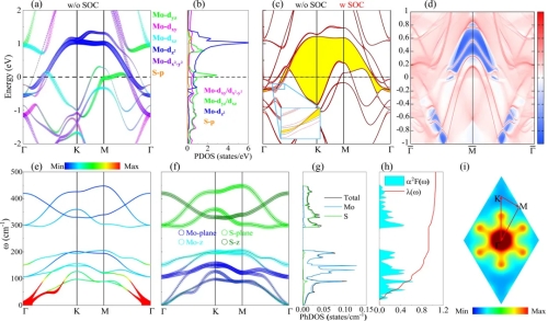 近期,该团队基于高通量计算,理论预测了一类具有MXene结构的二维过渡金属硫化物大家族M2S,包括2H和1T相,并将其命名为MSene(图1)。证明了在58个MSenes中有24个是稳定的。值得注意的是,该家族包括12种超导(SC)材料、7种超导拓扑金属(SCTMs)、4种电荷密度波(CDW)材料和5种磁性材料,其中包括1种铁磁(FM)和4种A型反铁磁(AFM)材料。例如,2H-Mo2S是一种SCTM,其超导转变温度为10.2 K,并且还具有非平庸的拓扑性质(图2);1T-Hf2S是一种CDW材料,其CDW起源于电声耦合。压缩应变可以抑制CDW,导致超导性的出现(图3);2H-Cr2S和1T-Mn2S分别表现出FM和A型AFM性质(图4)。因此,本研究预测的MSene大家族显示出丰富的物理性质,并显著扩展了二维材料的种类。它可以作为一个研究二维材料中SC、CDW、FM、AFM和拓扑相等多个序的竞争或共存的平台,为凝聚态物理、材料物理等领域提供了新的研究方向,也为实验制备及其在纳米电子器件中的应用奠定了重要的理论基础。