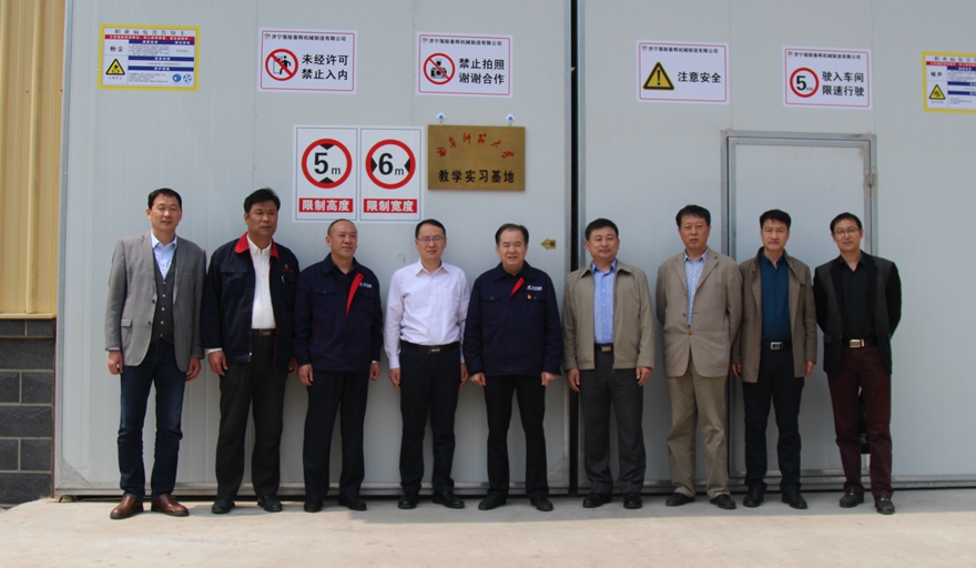 院长曹丙强、学院党委副书记孙金杰等一行七位学院相关领导老师、济宁落陵盛源控股有限公司党总支书记王政、副总经理欧阳金矿以及落陵春辉机械制造有限公司经理孟祥学等主要领导。揭牌仪式之前,首先与公司领导进行简要会谈,大家对基地设置事宜进行了交流,并就新旧动能转换及企业技术创新升级进行了探讨。会谈之后举行了实习基地揭牌仪式并参观了公司的生产和装配车间。