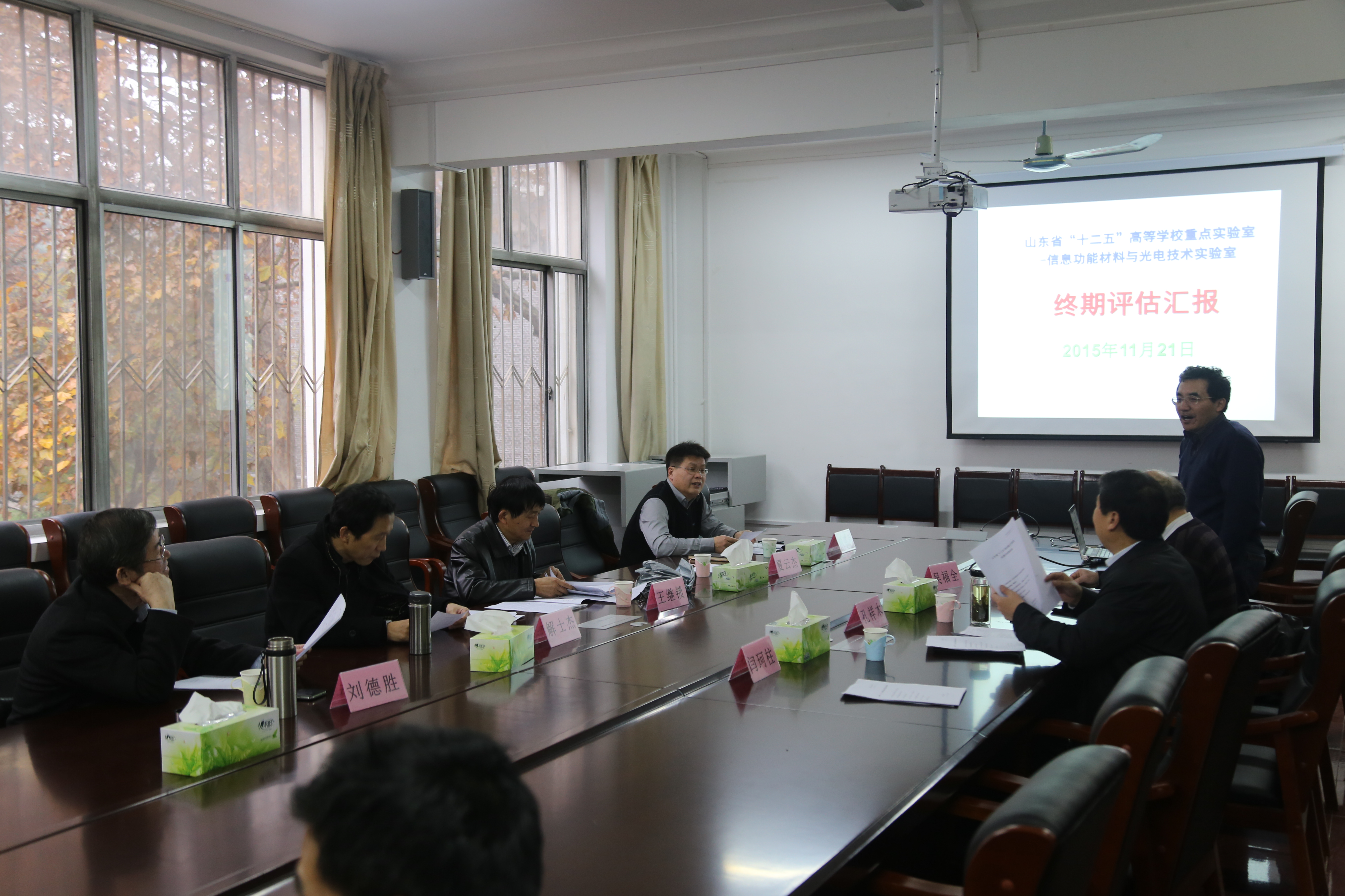 11月21日上午,污污漫画 召开山东省“十二五”高等学校重点实验室终期自评会议,对信息功能材料与光电技术重点实验室进行评估。