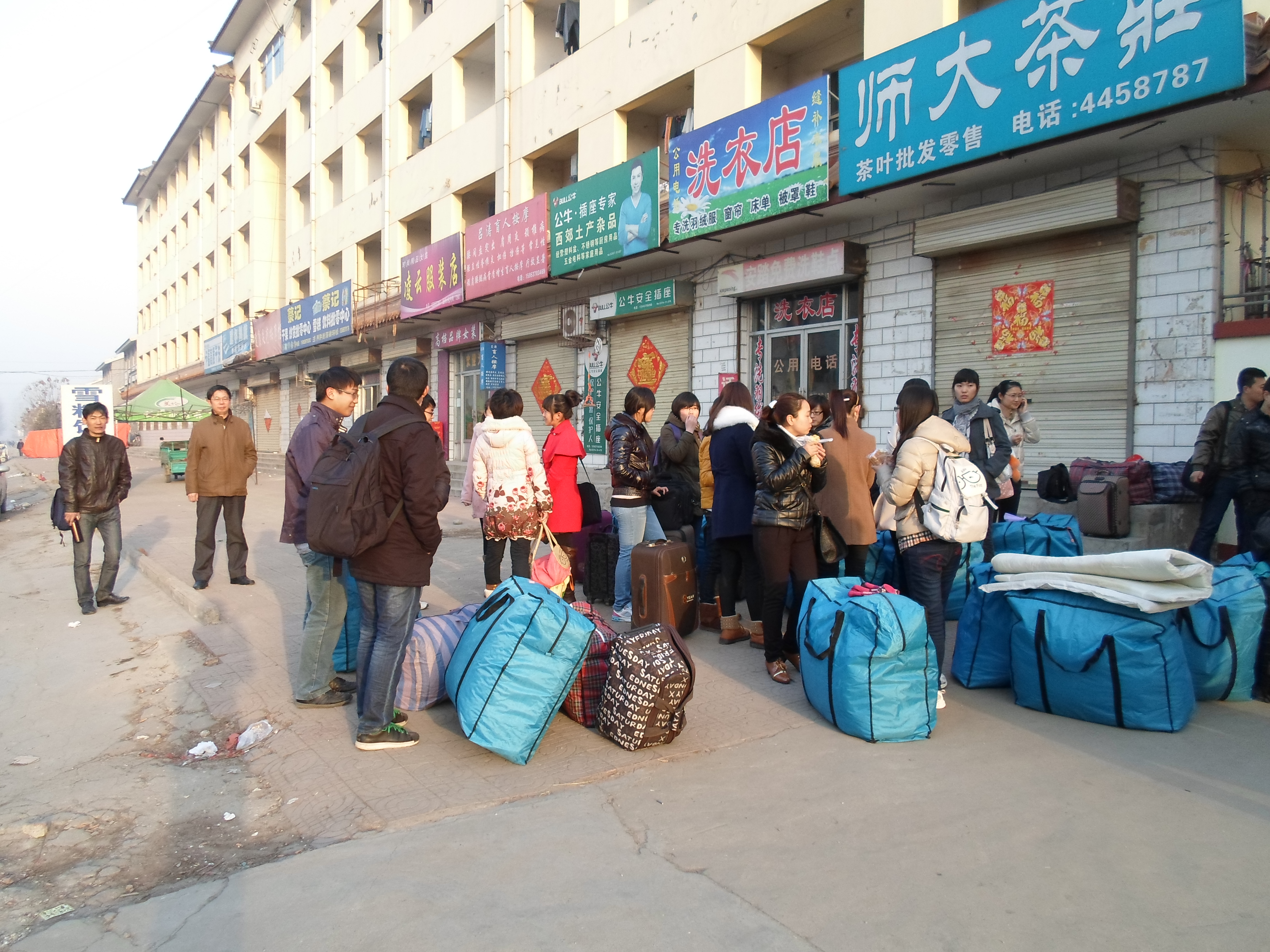 2010级部分学生在我校北公寓前集合,准备外出实习,学院副院长孔祥和教授及2009级辅导员李爱国老师为同学们送行。