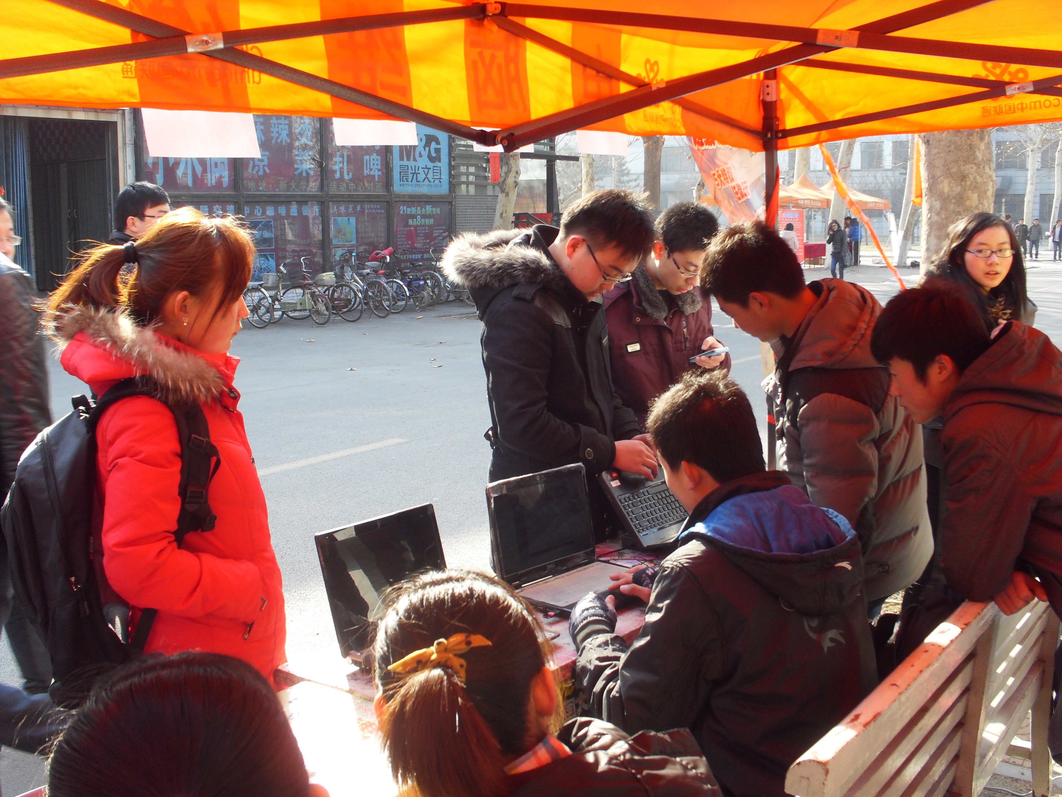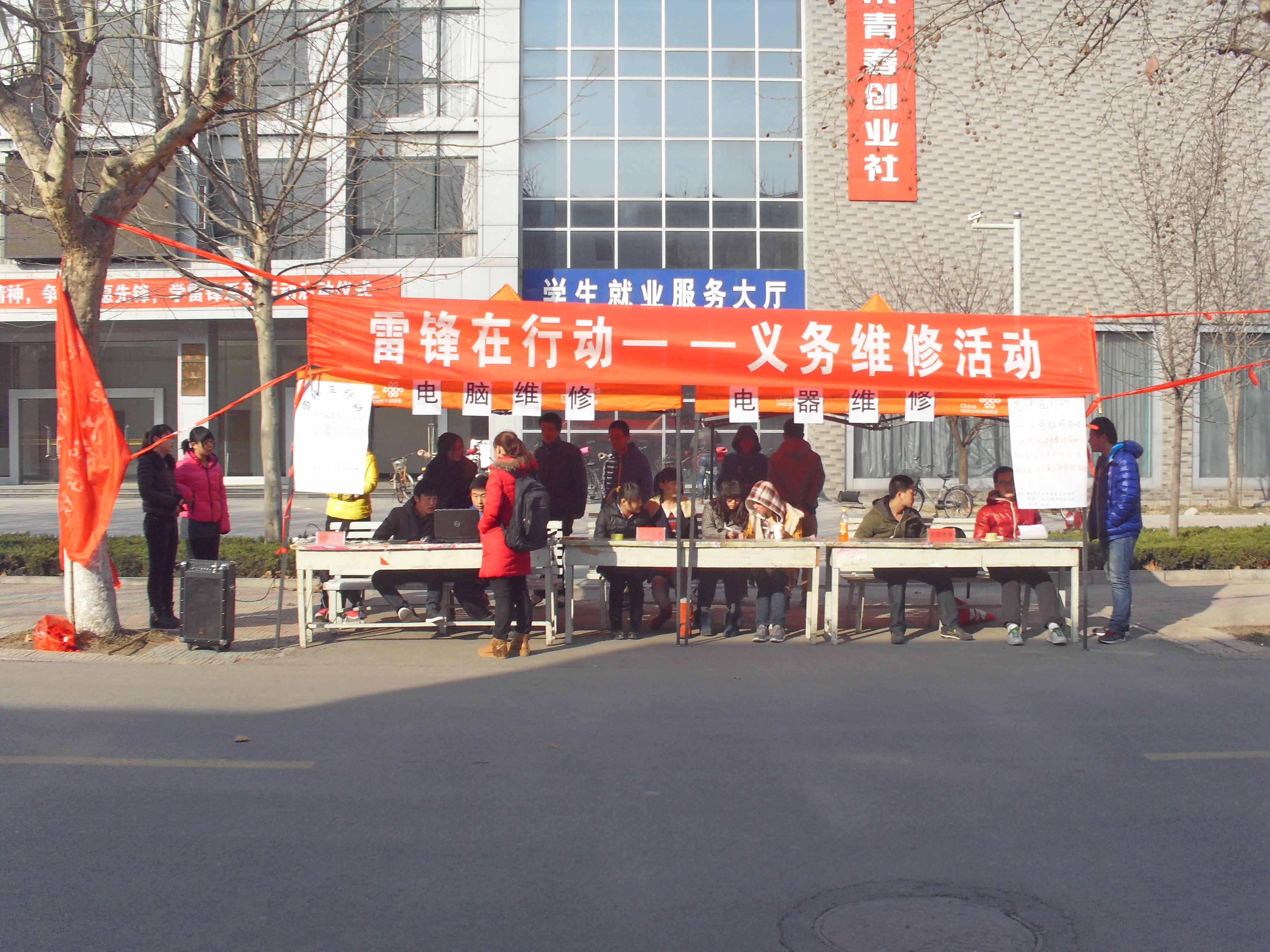 学生会网络部和科技协会在新大学生活动中心前举办了义务维修电子产品、家用电器的活动。