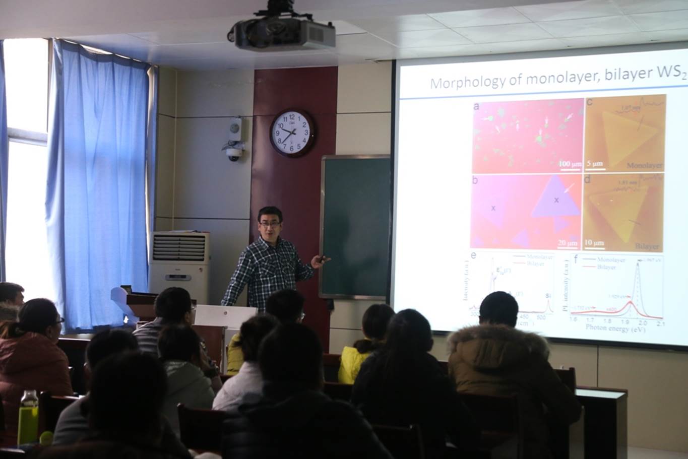 师生作了题为《CVD-grown triangular WS2monolayer and bilayer crystals----- Optical and electrical properties》的学术报告。