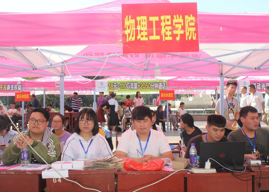 迎新现场,2017级同学以饱满的热情和热情的服务迎接每一位新生及家长,引导帮助新生办理一系列入学手续,一切都是紧张有序。本次迎新工作继续采用扫码报到和大数据实时汇总的方式,为新生报到提供了数字化便利。现场服务的往届同学根据各自分工主动带领新生前往学生公寓,帮助新生搬运行李并沿途介绍校园环境和建筑布局。学院楼前,综合咨询处的同学们为新生仔细解答疑惑并带领新生参观物理教学楼和实验楼,给他们讲解污污漫画