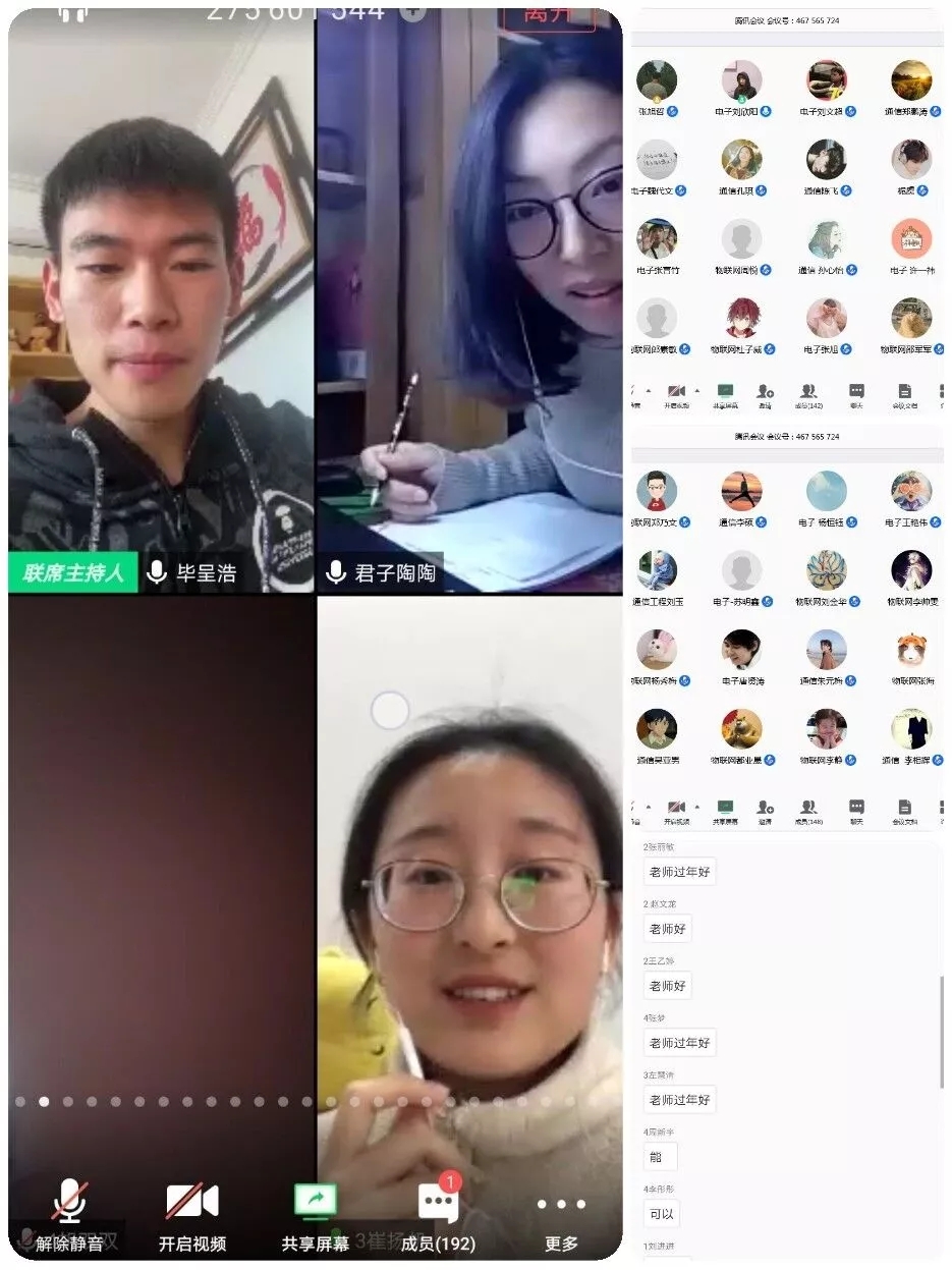 此外,辅导员们积极通过QQ、微信、腾讯会议等工具,化身网络主播开展各类主题班会。传达学校在疫情防控期间的系列部署,普及新型网络思想政治教育冠状病毒防护知识,做好学生思想引领,鼓励学生做防控知识的传播者、疫情谣言的制止者、健康校园的守护者。