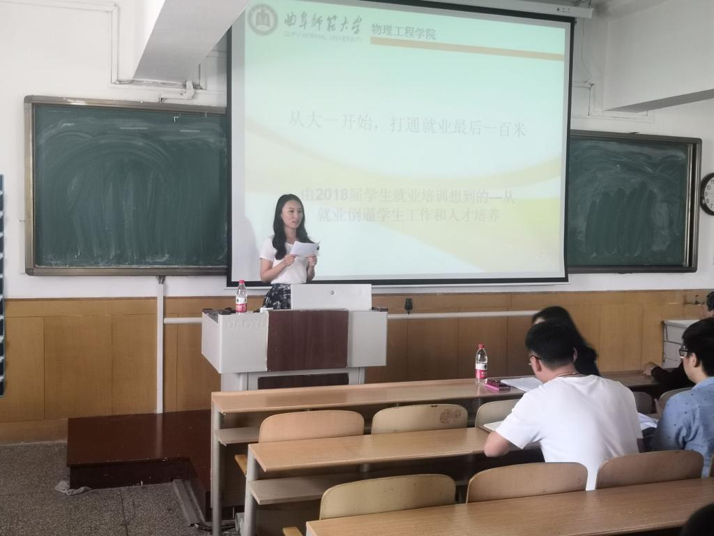 5月9日下午,由团委、学生会举办的主题为“赢在就业,点亮人生”的2018年“扬帆起航”春季学生干部第二期培训班在院楼404教室举行。出席本次活动的有党委副书记孙金杰、团委书记王琼和辅导员李爱国老师,2017级全体学生干部参加培训学习。