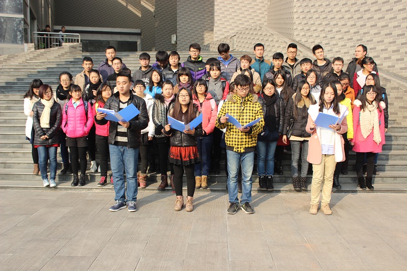 12月7日中午,污污漫画 在大学生活动中心礼堂及其南侧广场进行了“辞旧迎新,颂响中国梦”纪念“一二·九”大型朗诵比赛的第二次彩排。
