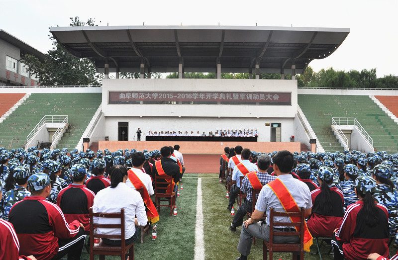 新生于西操场篮球场进行训练。在军训过程中,学院领导老师大力支持,学生会工作人员认真工作,2015级新生积极参与,军事训练顺利开展。