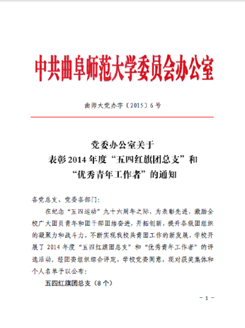 为了表彰先进,激励全校广大团员青年和团干部团结奋进,开拓创新,我校开展了2014年度“五四红旗团总支”和“优秀青年工作者”的评选活动。