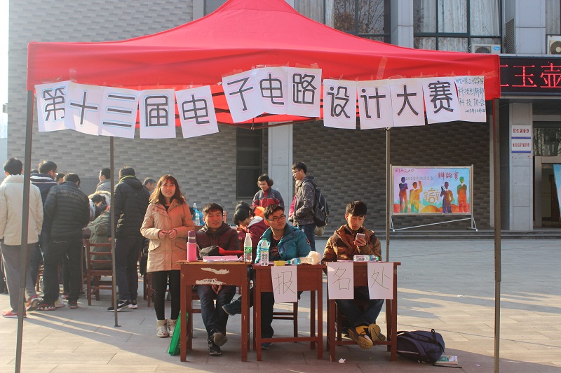 团总支主办,学生会科技创新部、科技协会承办的我校第十三届电子电路设计大赛业余组初赛在大学生活动中心前进行,来自各院系的同学积极参加比赛。