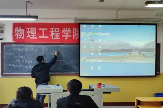 活动伊始,由边超群老师做开场讲话,他对各位参赛选手给予真切的鼓励并表示教师行业需要的是有理想有目标的人,用人机构更加注重个人的发展潜力。随后,各参赛选手按抽签序号依次上台展示自己的课堂。参赛选手的授课内容为初高中物理课程,他们通过运用PPT、板书、提问等方式充分调动听者的积极性,使得课堂严肃又活泼、务实也新颖。最后,由边超群老师总结,他对参赛选手做出了肯定,表示自己从中受到许多启发,同时对参赛选手提出了要注重沟通、气场外放和课题选择上新授课优先等建议。据悉,本次竞赛初赛成绩前百分之五十的选手将进入复赛,复赛人员名单将择日公布。