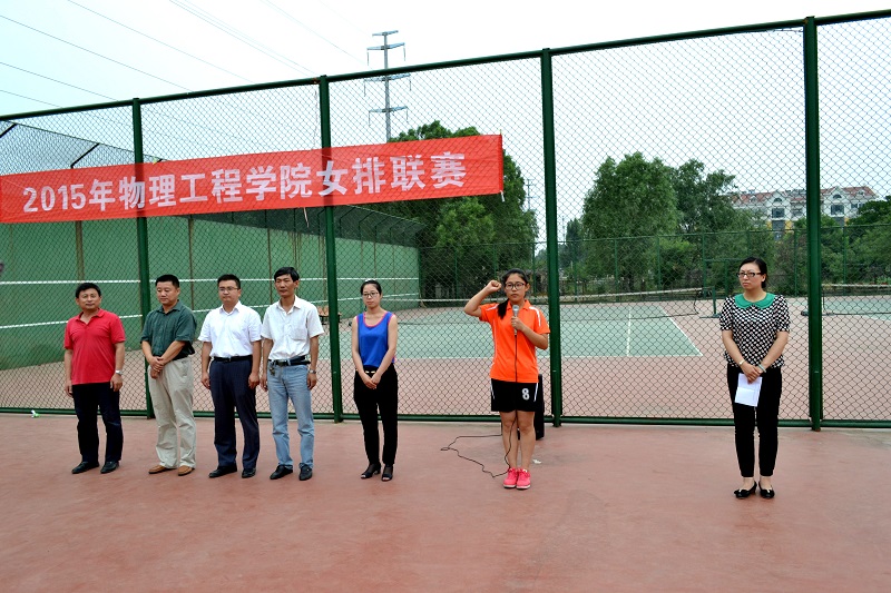 女排联赛开幕式于西操场顺利举行。学校体育教学部副主任李大新、团委副书记孔轶众,学院党总支副书记孙金杰、 辅导员李爱国、聂景兰出席开幕仪式。污污漫画