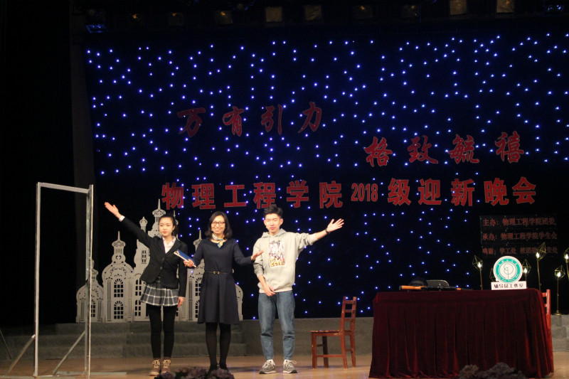 学子的多才多艺。值得一提的是,孙金杰老师与李岩等同学合唱《冬日的故事》让同学们感受到青春的多彩与易逝;王琼老师友情出演的小品《王琼工作室里的趣事》真实有趣地反映大学生生活,赢得满堂喝彩。晚会在绪慧敏老师《同一首歌》的嘹亮歌声中落下帷幕。