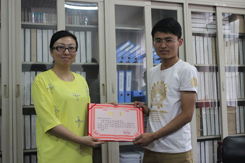 毕业生要密切保持与学校、学院的联系,积极与所在地校友会交流信息,积极参与母校和地方校友会的活动,继续关心母校建设和发展,以高度的责任心和奉献精神,发挥好纽带作用,同时为母校和校友事业的发展贡献力量。随后,由孙金杰、王琼、李爱国三位老师为张浩等16名同学颁发我校校友班级理事的聘书。
