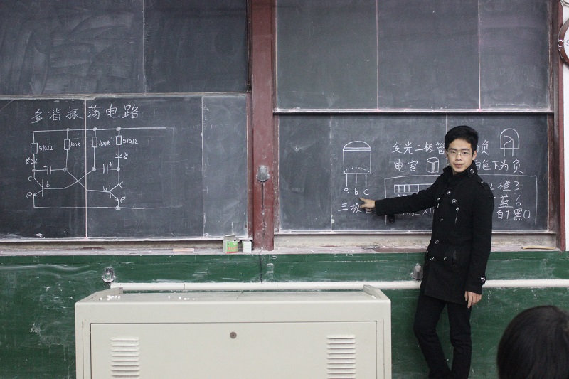 复赛的比赛内容为多谐振荡电路的焊接,比赛时间为40分钟,选手共分4组进行比赛。首先由工作人员向参赛选手讲解比赛要点以及注意事项。比赛过程中,参赛同学严谨认真,将发光二极管等零件焊接于电路板上,工作人员在一旁监督计时,保证了比赛的公平公正。比赛结束,工作人员将作品连接电源检查结果并进行计分统计。