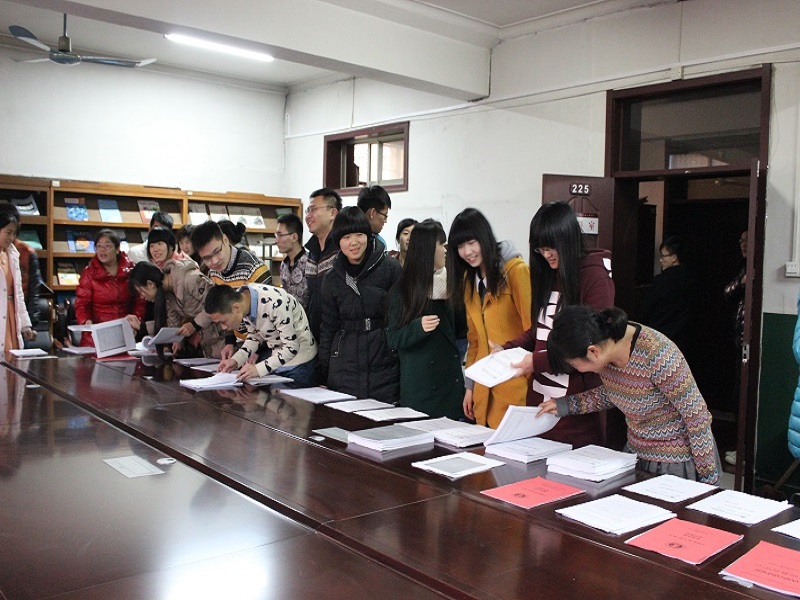 本次所展览的为各高校历年的考研试题,以此来帮助2011级面临考研的同学们顺利完成学业。展览过程中,孙金杰老师和王琼老师与同学们进行了亲切交流。本次活动持续了近一个小时,同学们对此次活动表示了认可并提出了相关意见和对试题内容整理方面的建议。