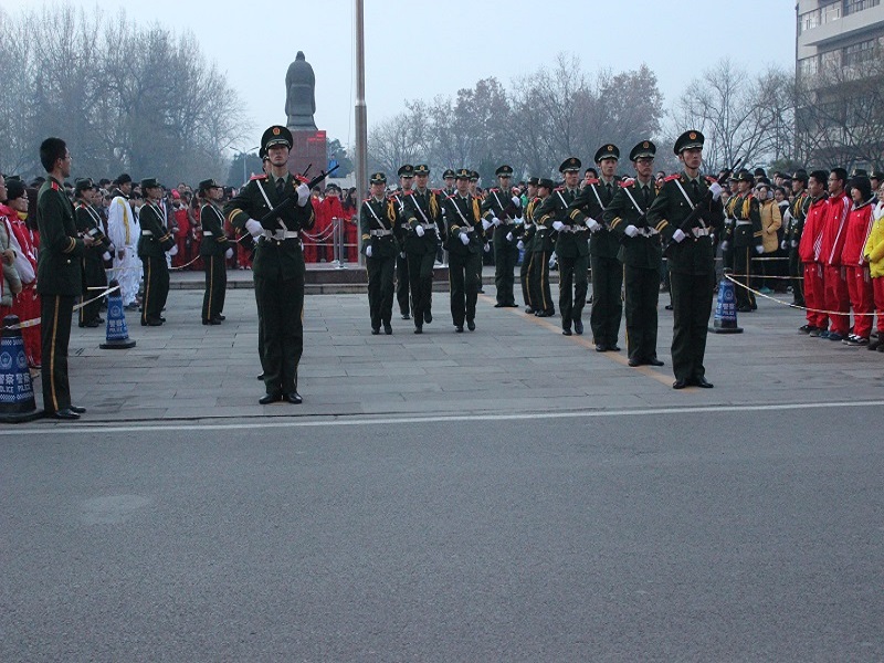 12月9日上午,我校由校学生工作处主办、国旗护卫队承办的纪念一二·九爱国运动升旗仪式在孔子文化广场举行。污污漫画 党总支副书记孙金杰带领2014级全体同学参加了此次仪式。