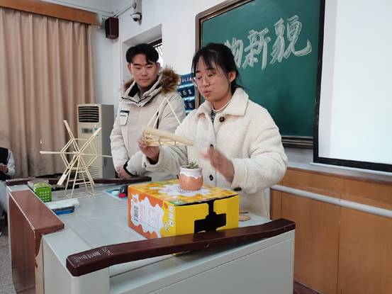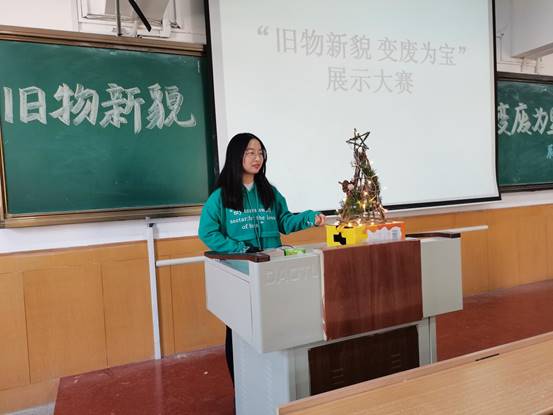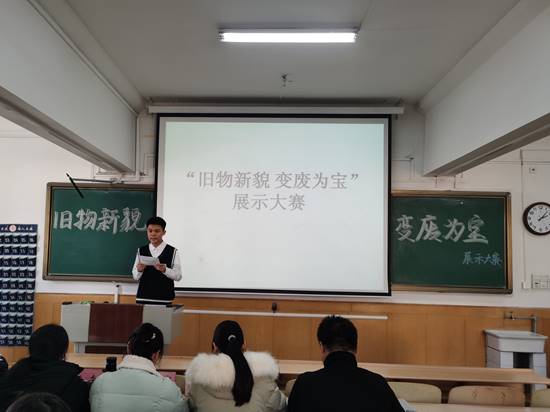 活动伊始,由主持人邹长澎介绍本次比赛的评委及规则,并强调“旧物新貌·变废为宝”展示大赛的重要意义。随后,比赛正式开始,各小组依次上场,从灵感来源、创作理念、创作过程、作品优势等方面介绍自己的作品。他们创作思路广、表现形式多,巧妙合理地使各种废弃物重新发挥价值。同学们的作品兼顾“实用”“美观”“易得”等要求,实现了资源上的最大利用,体现出了节约环保,反对的浪费的理念,评委们充分肯定了大家的奇思妙想,也从各个方面为作品做出点评。