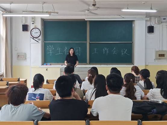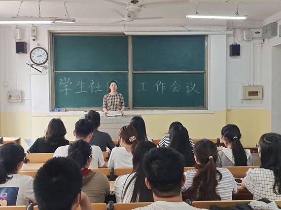 6月16日下午,学院于物理楼210教室召开学生社团工作会议。学院团委书记王琼,辅导员颜冲、邱金芝、孔瑞、王衡出席会议,学生会副主席马菡婧、社团管理委员会马尊及各社团负责人参加会议。本次会议由颜冲主持。