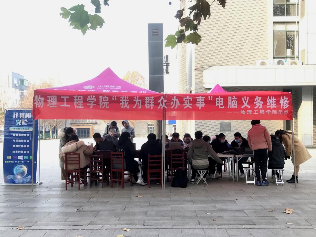 团委主办,学生会技术网络部承办的“我为群众办实事”电脑义务维修活动在大学生活动中心前举行。
