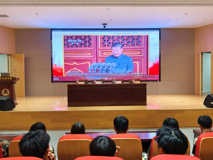讯(通讯员:孙晓晴 刘嘉晔 摄影:孙晓晴 李依诺)为深入学习领会习近平总书记在纪念中国人民抗日战争暨世界反法西斯战争胜利80周年大会上的重要讲话精神,充分发挥思政课育人功能,9月18日晚,学院于东辅楼报告厅组织观看“弘扬伟大抗战精神,做光荣自豪中国人——纪念中国人民抗日战争暨世界反法西斯战争胜利80周年”思政大课。学院党委副书记王琼、团委副书记朱佳文出席活动,2025级全体新生参加学习。
