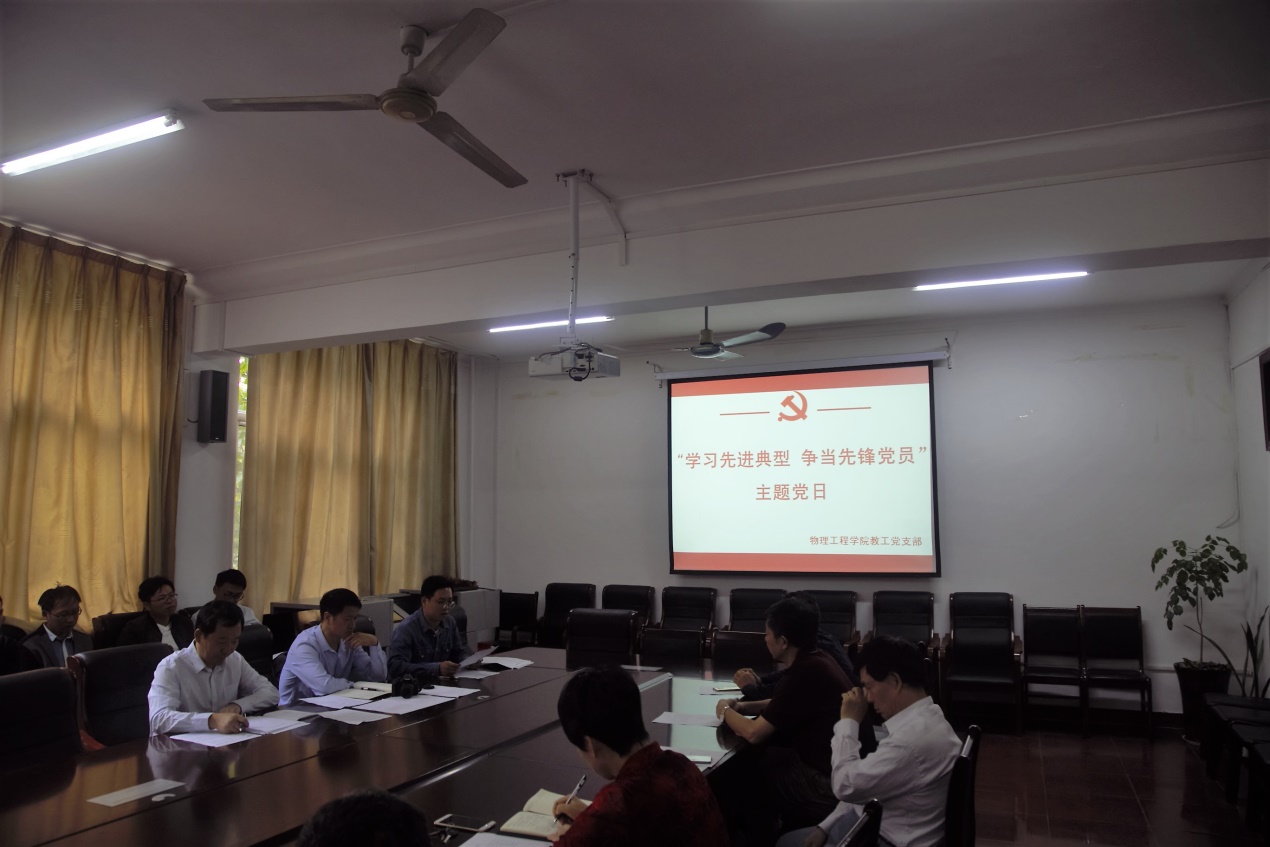 教工党支部在物理楼225会议室开展“学习先进典型、争当先锋党员”主题党日活动。