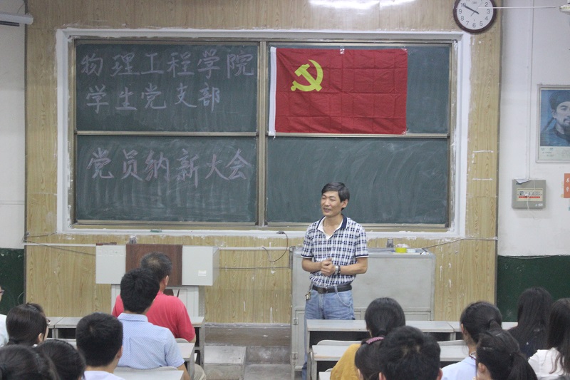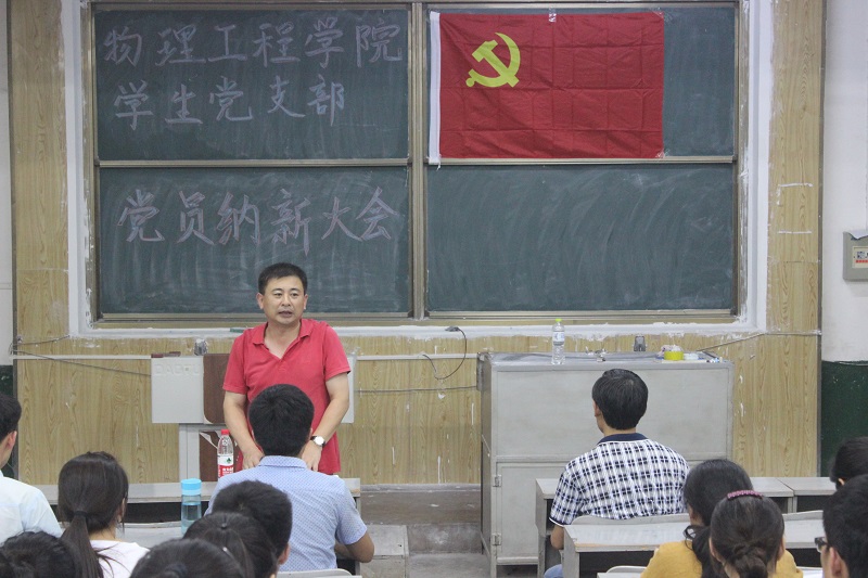 学生党支部纳新大会在院楼3阶1教室召开,党委副书记孙金杰、辅导员李爱国出席会议。
