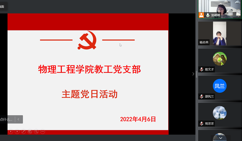 教工党支部通过腾讯会议,线上开展主题党日活动。会议由教工党支部书记郑萌萌同志主持,全体教工党员参加本次活动。
