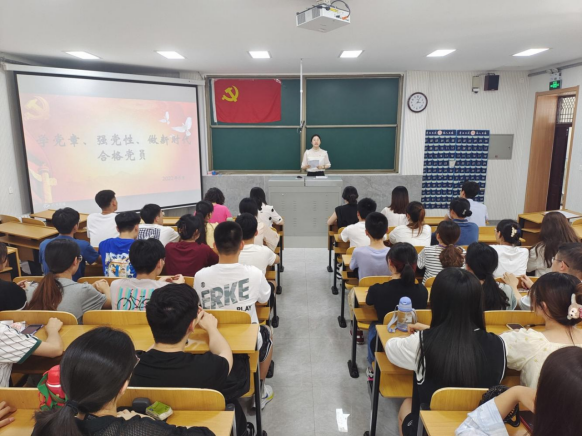 本科生党支部书记颜冲讲了“学党章、强党性、做新时代合格党员”专题党课。围绕党章的修改历程、党章的主要内容,结合生动事例和工作实际为本科生党员作讲解,激励全体党员自觉发挥先锋模范作用,努力成为堪当民族复兴重任的时代新人。