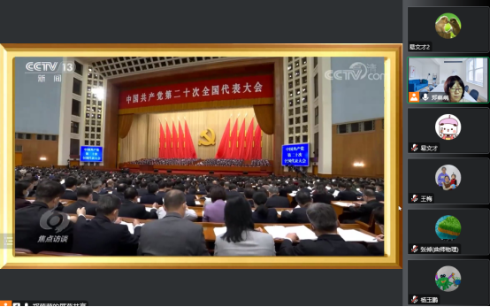 教工党支部通过腾讯会议开展线上主题党日活动,学习贯彻党的二十大精神。会议由教工党支部书记郑萌萌主持,全体教工党员参加本次活动。