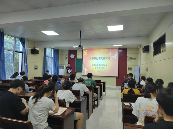 为深入开展党纪学习教育,引导全体党员学纪、知纪、明纪、守纪,2024年5月,学院教工第一党支部、教工第二党支部、研究生第一党支部、研究生第二党支部、本科生第一党支部、本科生第二党支部、本科生第三党支部书记,分别在所在党组织讲党课,学院各党支部全体党员参加学习。