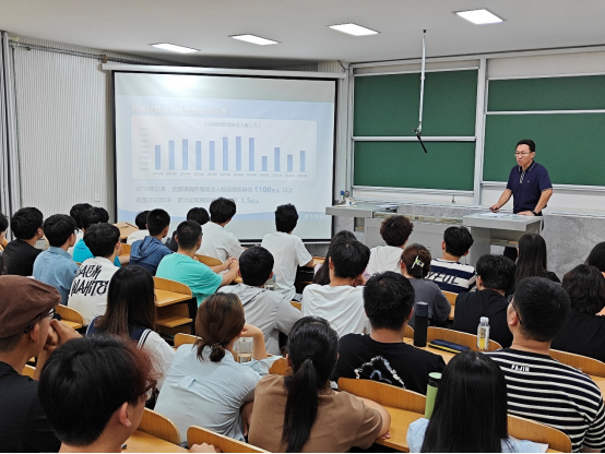 于健围绕就业形势总体稳定、就业压力仍存、确保就业优先、着力拓宽渠道四个方面进行授课,详细解读了目前的就业政策,让同学们充分认识到国家优先战略保障就业,帮助同学们端正就业心态。