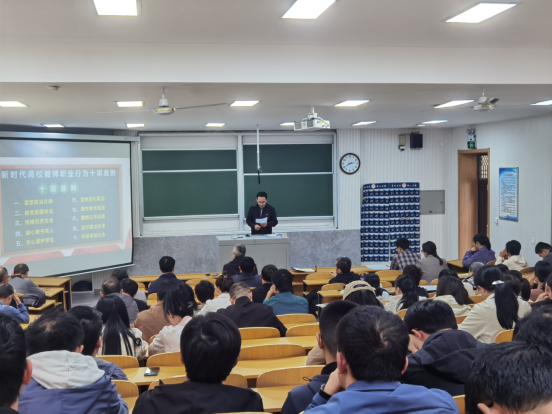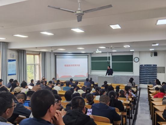 在二阶一召开师德警示教育大会,重点开展教师思想政治教育和师德师风警示教育。会议由党委书记于健主持,学院全体教职工参加会议。