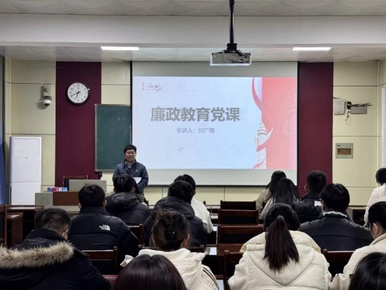 组织了一场主题为“筑牢思想防线,争做廉洁表率”的廉政教育专题党课。此次讲座由学院纪检委员刘广强主讲,吸引了众多研究生党员参加,现场座无虚席。