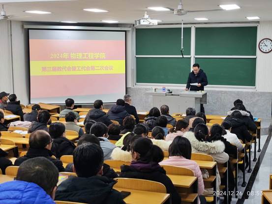 第三届教职工代表大会暨第三届工会会员代表大会第二次会议在物理楼2阶1隆重召开。学院党政领导、全体教职工代表及工会会员代表参加了会议。会议由学院党委书记于健主持。