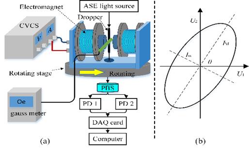 反之,将微纳光纤浸入磁流体,基于光偏振态的检测,还可实现对矢量磁场的实时测量(IEEE J. Lightwave. Technol., 2018, 36(9): 1620-1625, SCI二区TOP),该磁场传感器具有响应速度快的优点。研究发现,待测磁场存在一个诱导磁性纳米颗粒产生自排列的阈值。若磁场强度大于该阈值,磁流体的磁光二向色性对微纳光纤的偏振调制具有非常长的时间响应。所以,该传感器只能测量小于检测阈值的变化磁场。(报道网址://ieeexplore.ieee.org/document/8226752)
