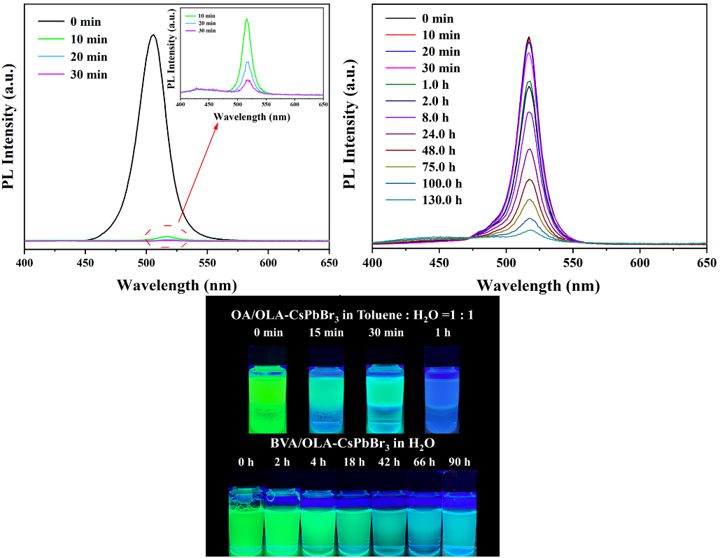 图为CsPbBr3-BVACsPbBr3-OA量子点的稳定性测试