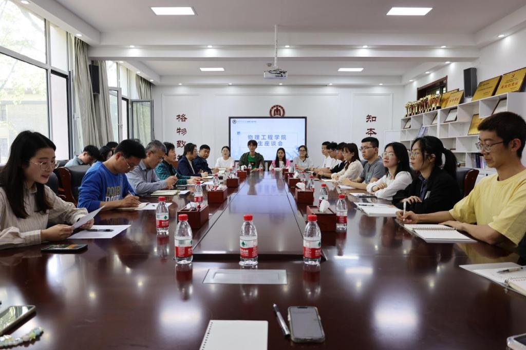 讯(通讯员:刘露洁 李思林 摄影:张蕴之)为加强学院师生间的联系,进一步了解学生学习生活,4月19日下午,学院于物理楼225会议室召开学生座谈会。学院党委书记杨志英,院长满忠晓,党委副书记王琼,副院长张英杰、刘广强,全体辅导员出席会议。各年级学生代表参加会议。座谈会由团委副书记颜冲主持。