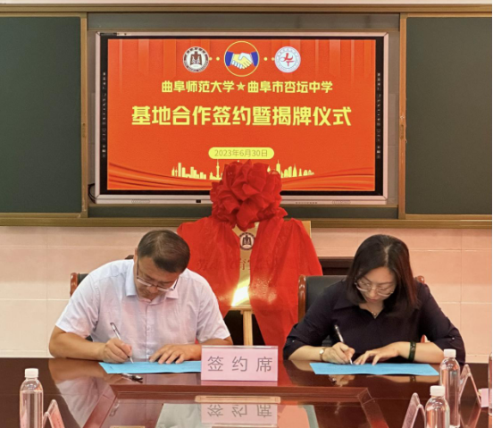 与曲阜市杏坛中学举行合作共建劳动教育实践基地签约暨揭牌仪式。污污漫画