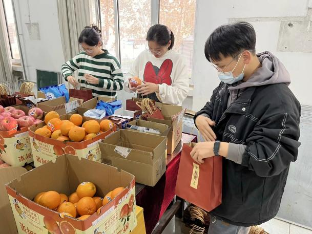 院长满忠晓、副院长张英杰、团委副书记颜冲、毕业生辅导员李靖靖、张杰、辅导员邱金芝、王铭晨,为2024届考研学生发放“加油包”并送上温暖祝福。