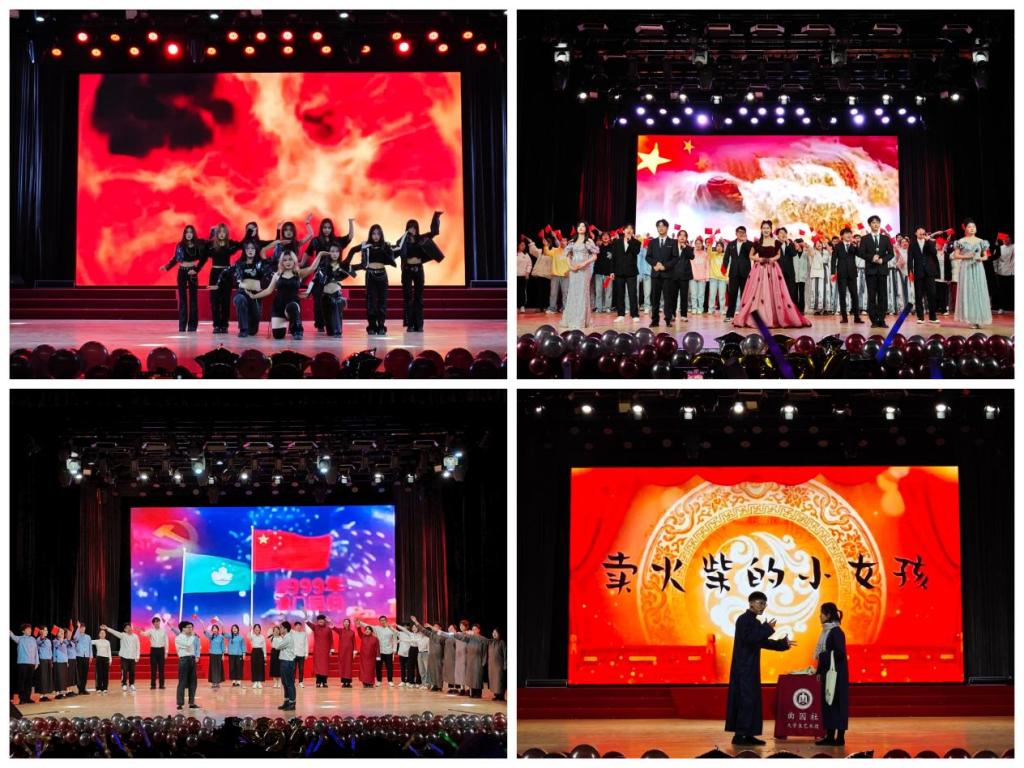 2024级新生欢聚一堂,怀揣希望与梦想,共赴一场青春的璀璨盛宴。开场舞《跃动青春》热情洋溢、动感十足,点燃全场激情,拉开晚会的序幕。晚会涵盖歌曲、舞蹈、相声、朗诵等多种表演形式,古典舞曼妙悠扬,光影交错,编织如梦如幻的舞乐胜境;歌曲静谧美好,优美动听,诉尽青春之热烈;情景朗诵声情并茂,慷慨激昂。最后,一首合唱歌曲《我爱你中国》以深情厚意礼献祖国,晚会圆满落幕。