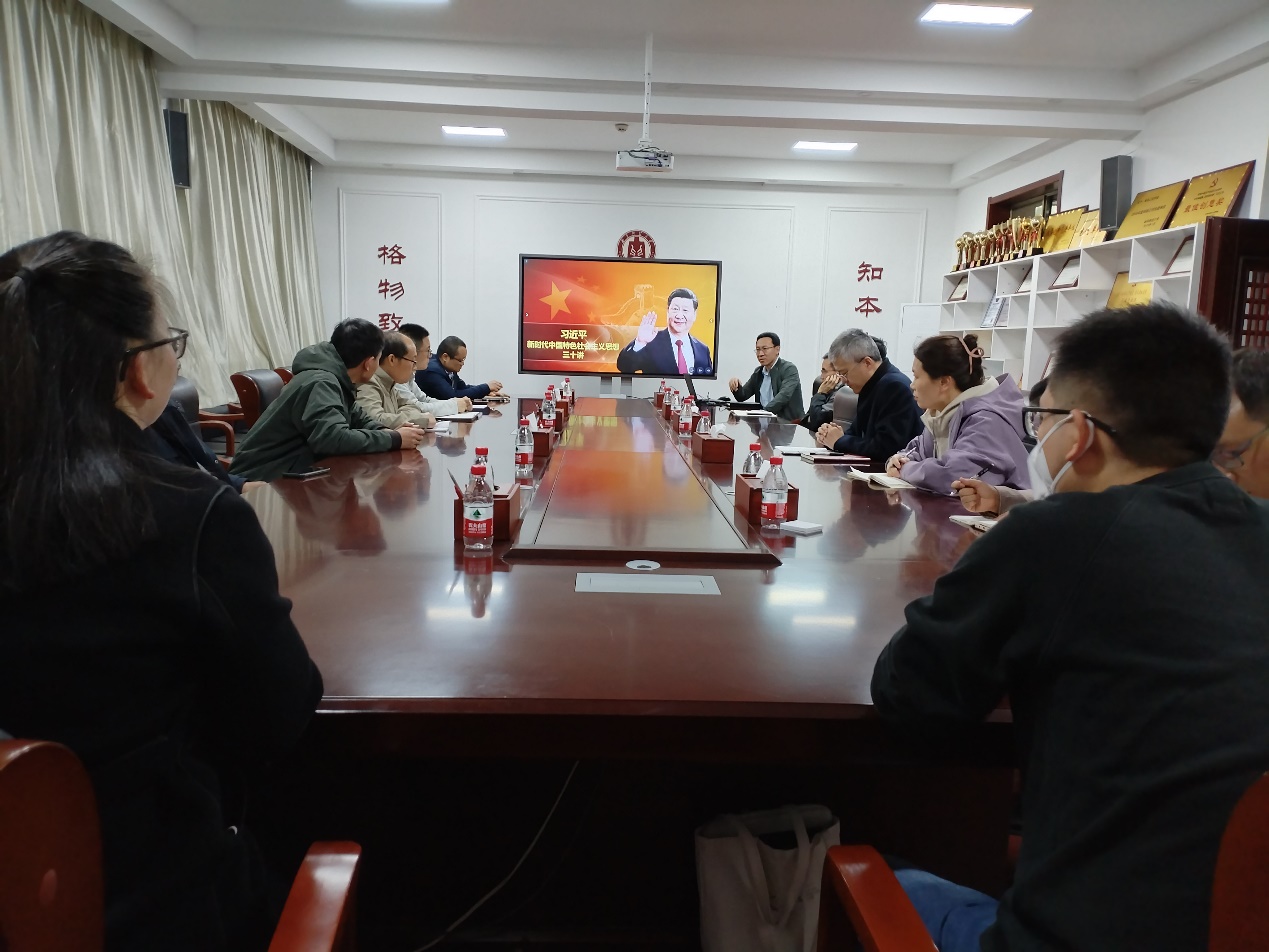 在物理楼225会议室组织召开了教职工政治理论学习会,会议由学院党委书记于健主持。会上,于健书记领学了《习近平新时代中国特色社会主义思想三十讲》第一讲——习近平新时代中国特色社会主义思想是党和国家必须长期坚持的指导思想。随后,与会教职工结合工作实际进行了热烈讨论。