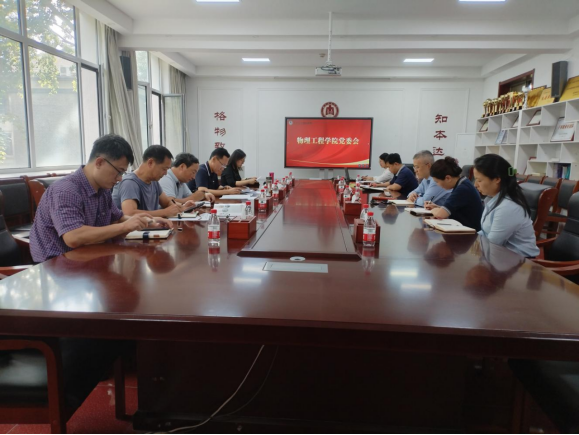 在物理楼225会议室召开党委会。党委书记于健主持,学院领导班子全体成员、党委委员、教师党支部书记、各教研室主任参加会议。