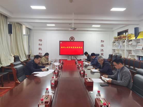 在物理楼225会议室召开党政联席会议,学院领导班子全体成员参加了会议。